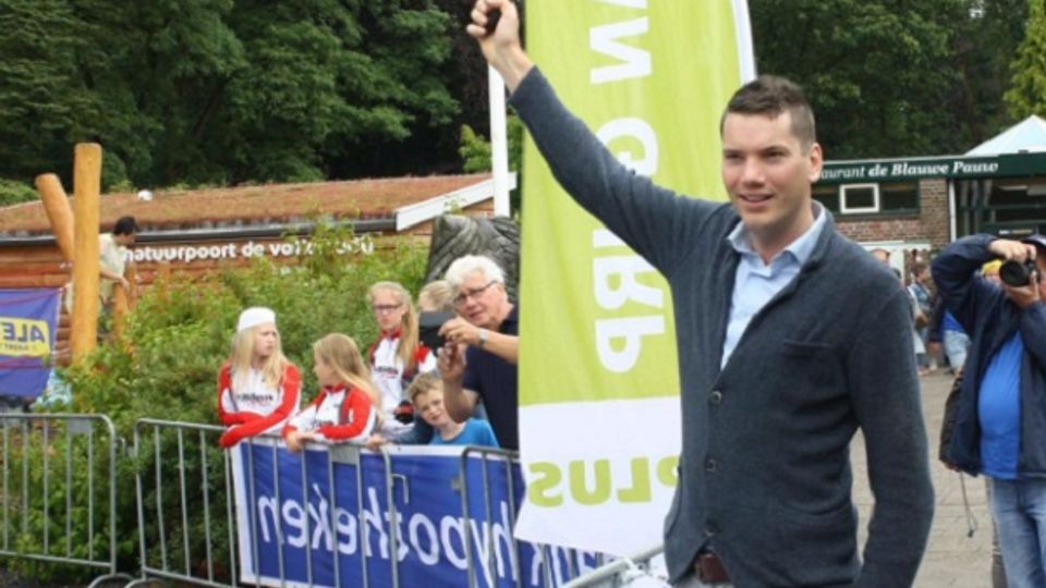 FOTO: Wethouder van Agtmaal geeft het startschot voor de veldrit in Ossendrecht.