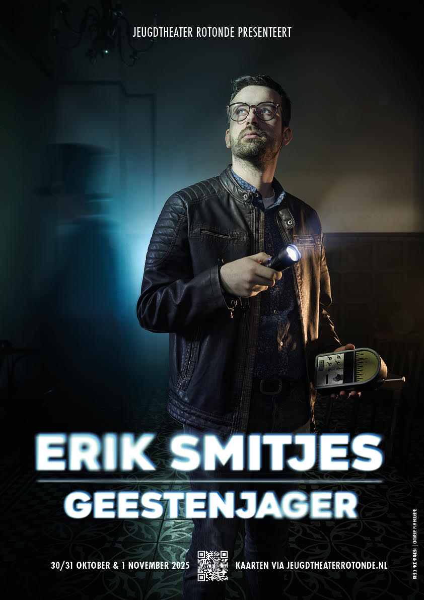 Erik Smitjes: Geestenjager is te zien op 30 en 31 oktober en 1 november in Het Patronaat in Bergen op Zoom. Voor meer informatie en tickets kijk je op jeugdtheaterrotonde.nl.