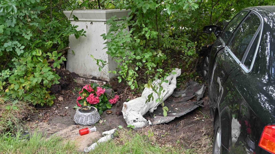 Jezusbeeld van sokkel gereden na auto-ongeluk op Hilsebaan