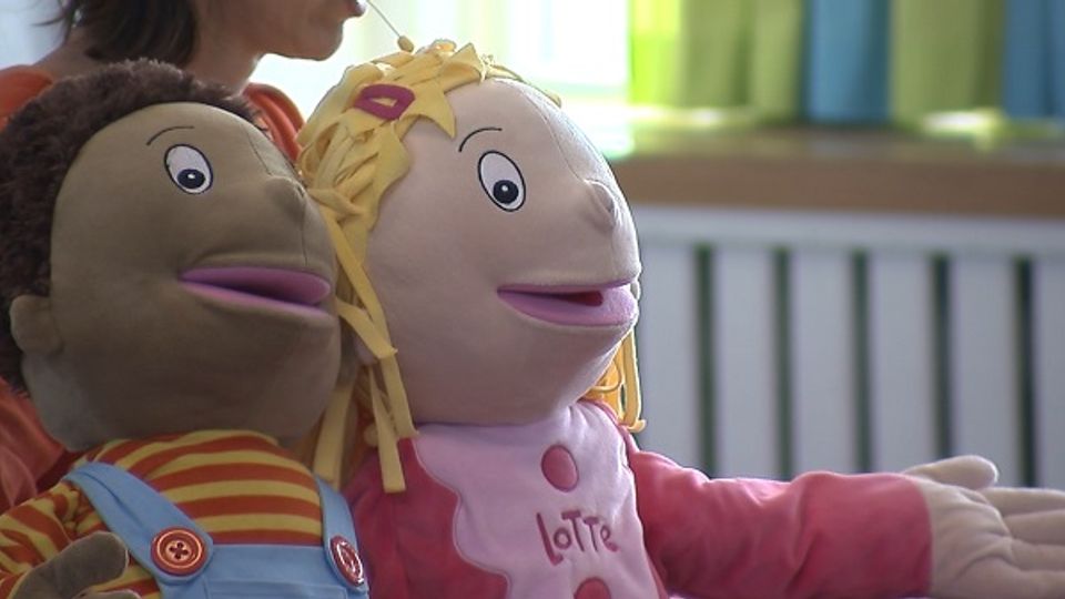 Kinderen van basisschool de Kroevendonk in Roosendaal leren gebarentaal met de module Lotte en Max. Lotte en Max zijn twee handpoppen die leraren gebruiken om de peuters en onderbouw leerlingen handgebaren te leren. Vrijdag was er ook een voorstelling te zien van een acteur en actrice van de module waarin kinderen samen met de toneelspelers hun gebarentaal toonden.