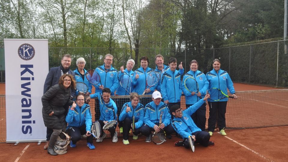 Kiwanis Club Roosendaal heeft op zaterdag 15 april Tennisclub Etten voorzien van 16 nieuwe trainingspakken voor het G-tennisteam.