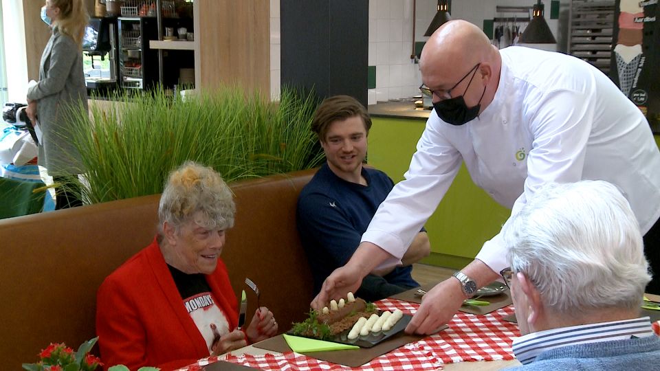 De asperge verschijnt deze dag in verschillende vormen op de borden van de bewoners van het verzorgingshuis. Zo komen er traditioneel bereide asperges voorbij met ham en ei, maar ook twee ware innovaties.