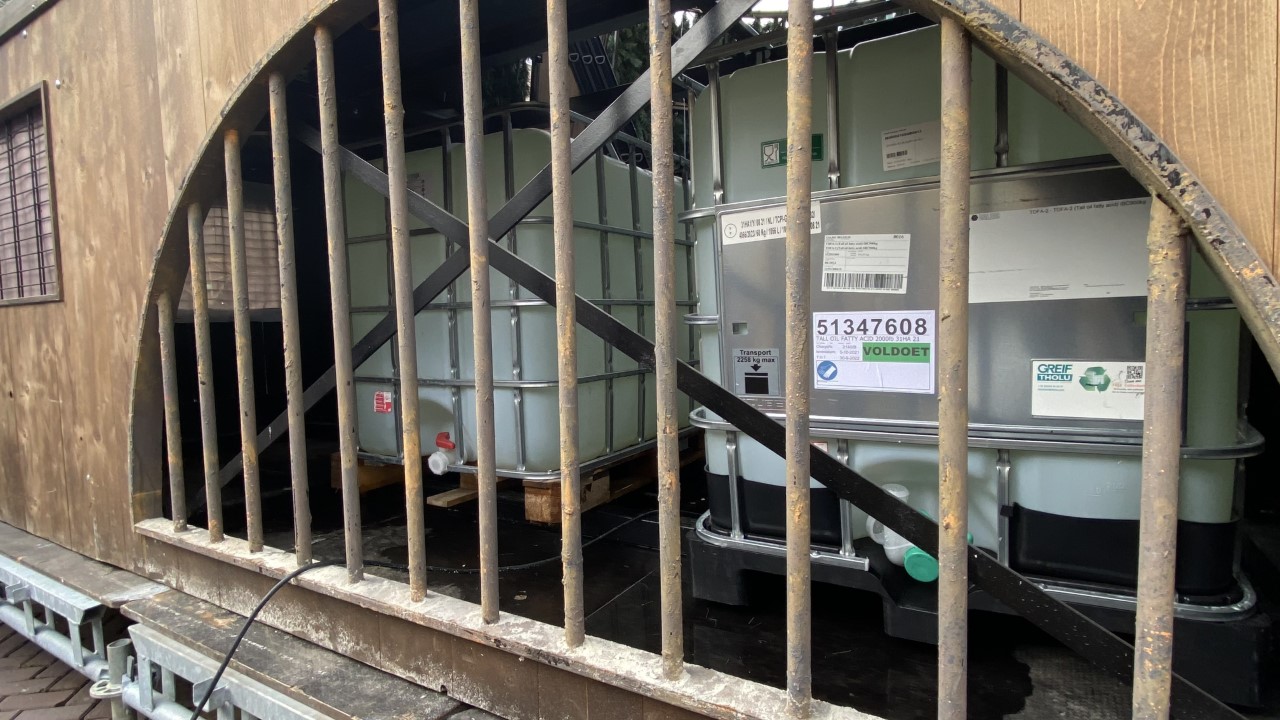 Vrijdagmiddag rond het middaguur werd het bovenste deel van de boom bevestigd. Daarmee werd een dagenlange klus voltooid. “Aan de onderkant zie je een groot, houten bordes”, legt Kolthoff uit. “Daarin staan acht vaten met elk duizend liter water. Puur als contragewicht, om de boom netjes op zijn plek te houden.” Al heeft de ruimte nog een functie. “Hier komen geluidsboxen in. Daar komen straks kerstliedjes uit en hij kan zelfs sprookjes vertellen. Al wachten we daar nog wel even mee tot de Sint uit het land is, hoor.”