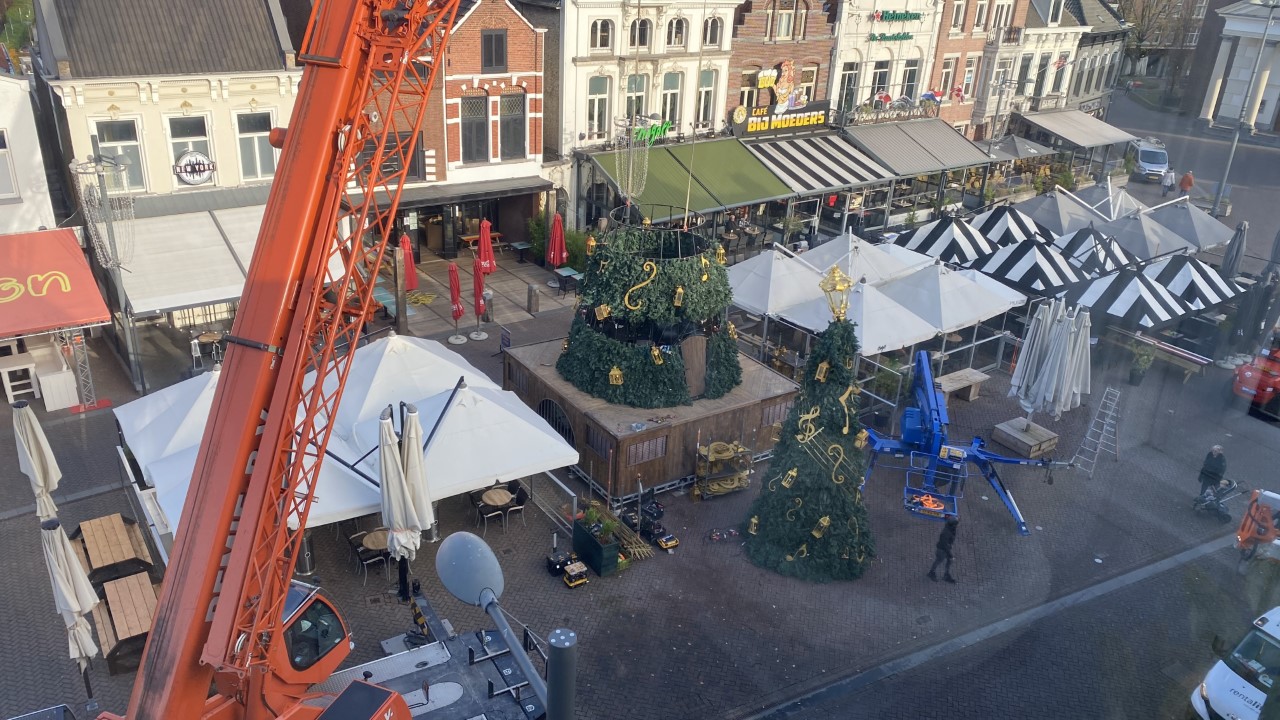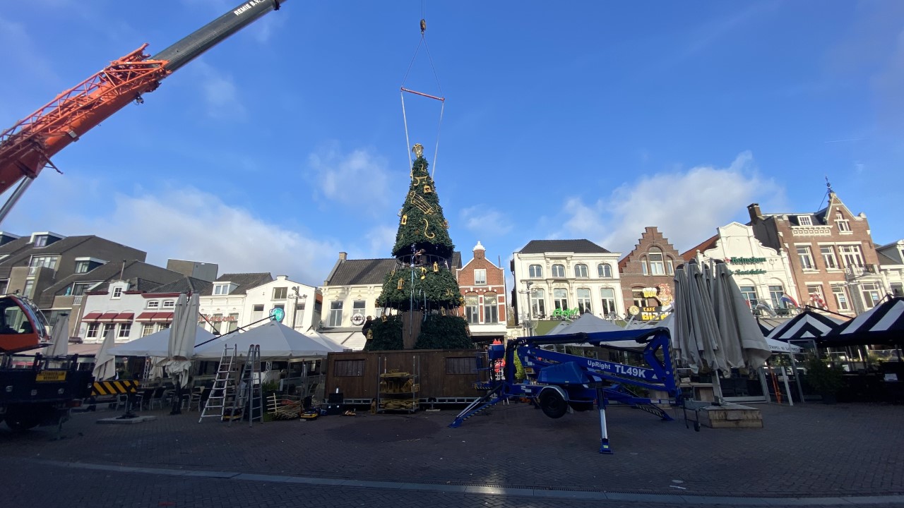 Hij is 12,5 meter hoog, hangt vol met duizenden lichtjes en heeft een spectaculaire piek: de kerstboom, die sinds vrijdag midden op de Markt in Roosendaal staat. Het wordt dé eyecatcher van het plein, waar voor het eerst in jaren geen schaatsbaan te vinden is. “En dus is er nu de ruimte om er een groot Winter Wonderland van te maken.”