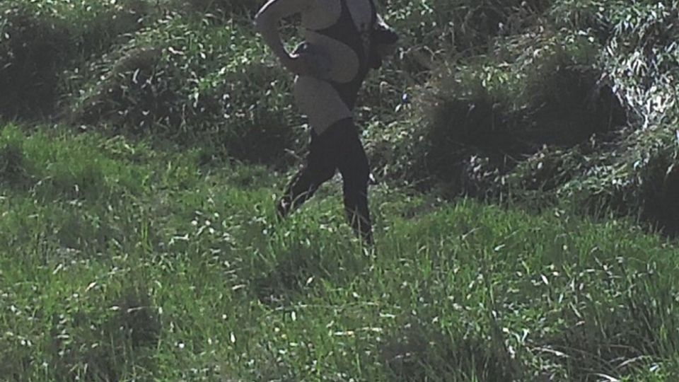 Op de foto is een man te zien in een bijzondere lingerie, zonder dat zijn gezicht zichtbaar is. Wie de man is en wat zijn bedoelingen waren in de natuur is niet duidelijk.
