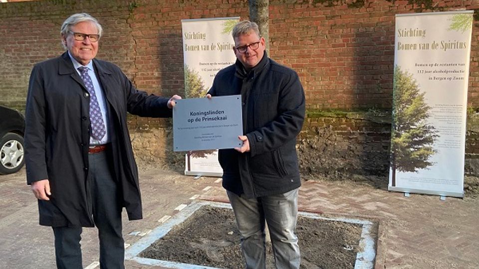 De stichting Bomen van de Spiritus heeft de 2 koningslinden cadeau gegeven aan de gemeente Bergen op Zoom. Wethouder Patrick van der Velden heeft de bomen woensdagmiddag onthuld. Dat deed hij samen met Theo Schots van de stichting Bomen van de Spiritus. De koningslinden staat in de buurt van het Hamhuis, een nieuw appartementencomplex op het voormalige Nedalco-terrein.
