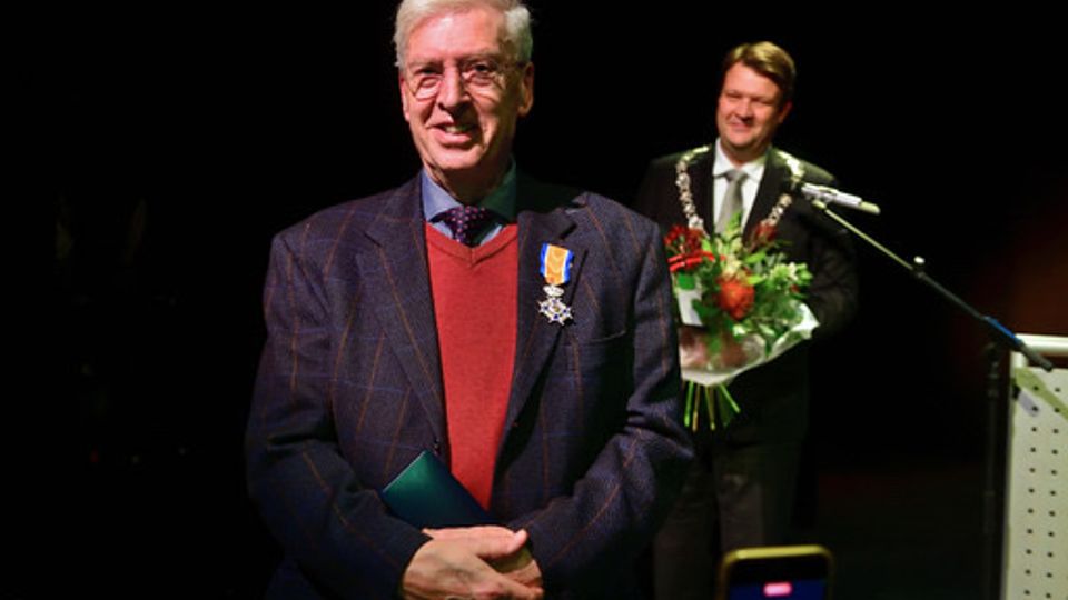 Ad van Wesel neemt zijn Koninklijke onderscheiding in ontvangst. Foto: Gemeente Roosendaal