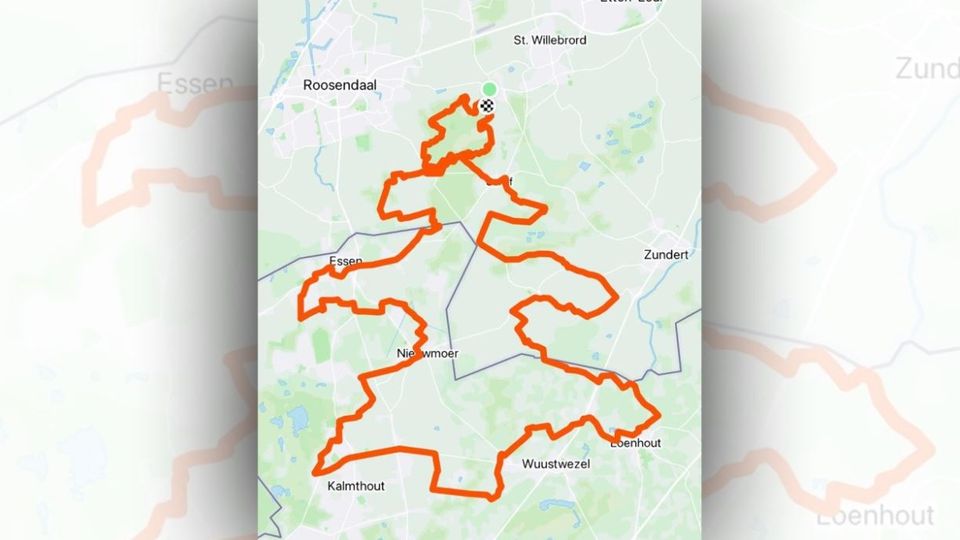 Maar ondanks die kleine afwijkingen is de bedenker zeer tevreden over het eindresultaat. “Op Strava hebben we de route nog een bijzonder kleurtje gegeven. Is ‘ie extra feestelijk.” Een mooie bijkomstigheid, want de ballen en slingers ontbreken. “Maar na ruim honderd kilometer was dit wel voldoende”, lacht John.
