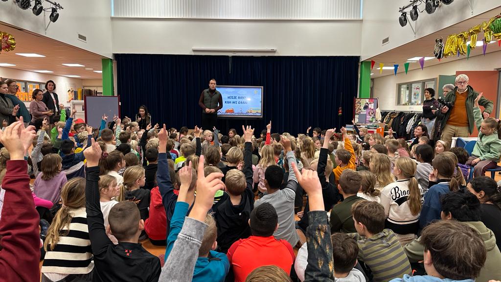 De leerlingen kregen ook een aantal quizvragen van de wethouder voorgelegd over het verkeer. “Ik vond het erg leuk, bovendien had ik ook alle vragen goed”, vertelt Lieke. Klasgenoot Tim had ook alle vragen goed. Wethouder De Heer is dan ook trots; “Het is goed om te zien dat de leerlingen zo enthousiast meedoen en er ook veel van af weten.”