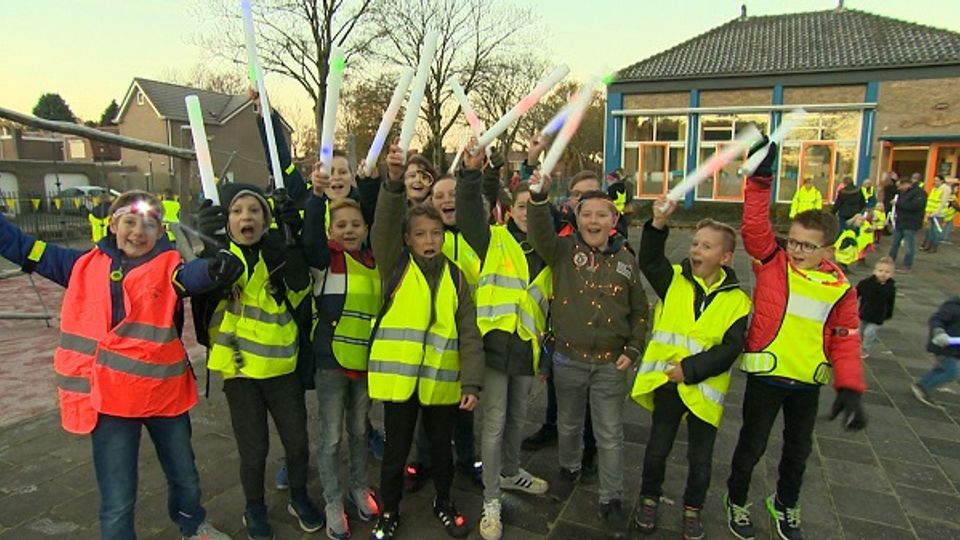 Leerlingen basisschool Sint-Maarten in Halsteren goed zichtbaar op pad