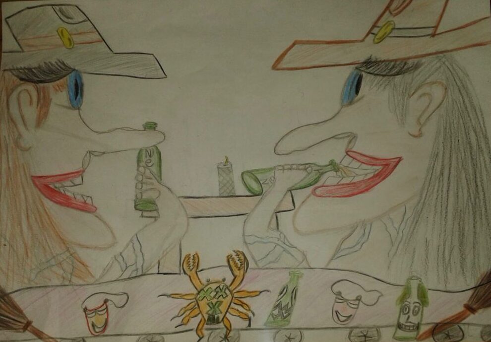 Ernad Omerovic van ’t Rijks heeft zijn ontwerp bij zich. “Vanuit daar gaan we kijken wat we nodig hebben om het te bouwen.” Van de Vloajestaampers leert hij waar hij op moet letten in zijn ontwerp, waarop heksen te zien zijn. Zo zijn de muziek en de kleuren die gebruikt worden in de wagen erg belangrijk. “Hopelijk levert deze excursie wat meer creativiteit op.”