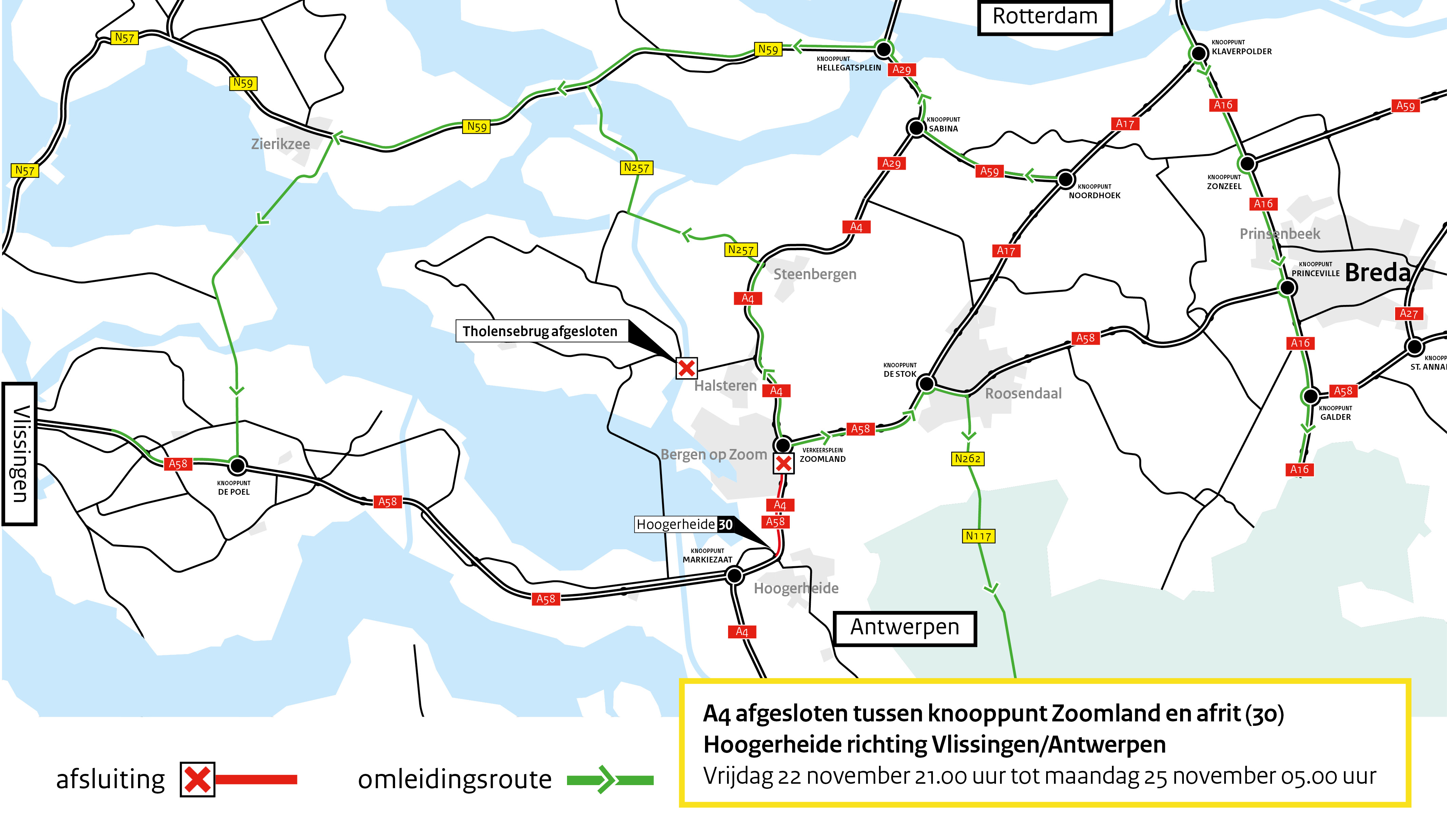 Let op: snelweg A4 tussen Bergen op Zoom en Hoogerheide volgend weekend dicht