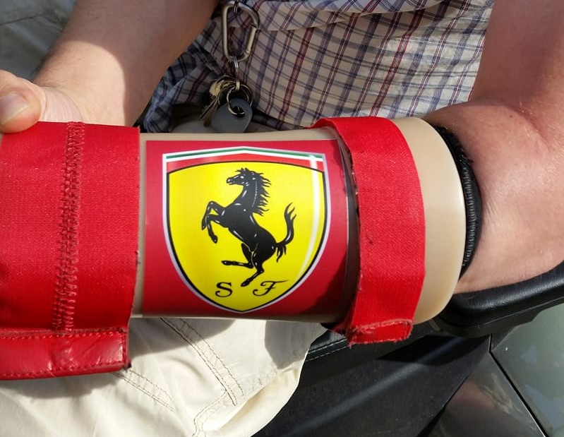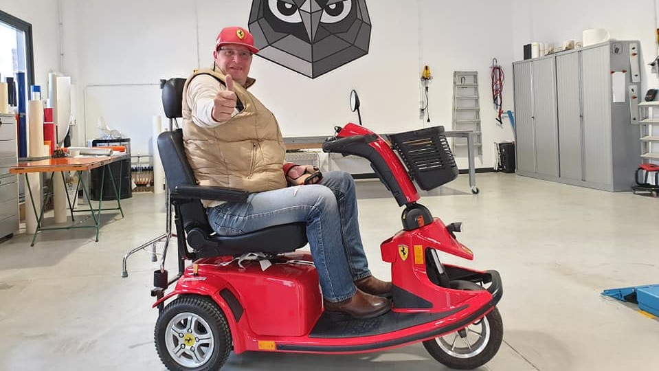 Eén ding is altijd hetzelfde gebleven: zijn liefde voor (race)auto’s. Zijn rode scootmobiel is zelfs zo gepimpt dat het lijkt alsof hij in een Ferrari rijdt. “Maar helaas gaat mijn Ferrari niet zo hard.”
