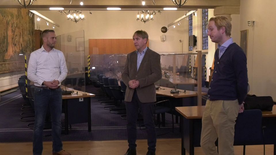 De topdrie van Belang van Bergen op Zoom (BVB) met Eric de Bie (midden), Camiel van der Meeren (rechts) en lijstaanvoerder Maikel de Bekker.