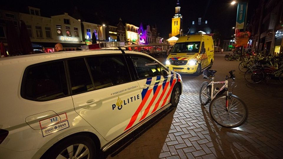 Toen de politie arriveerde, troffen ze op de Markt een gewonde man en een hoop omstanders aan. Ze hebben eerste hulp verleend aan het 20-jarige slachtoffer. Hij is per ambulance naar een ziekenhuis gebracht.