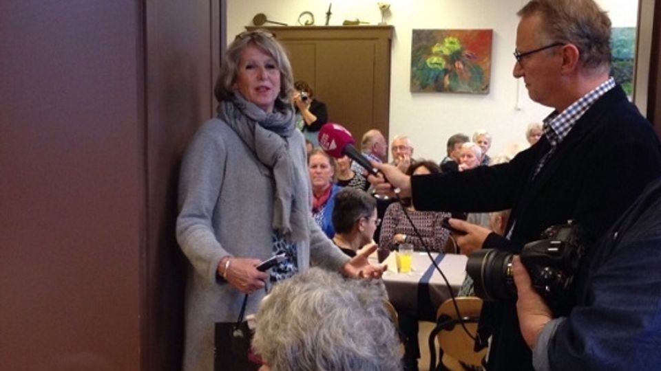 Foto: verslaggever Albert van Egeraat in gesprek met Yvonne Kammeijer