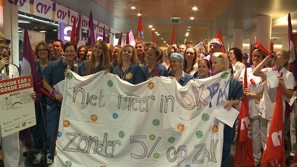 “De werkdruk neemt toe, we moeten steeds vaker overwerken, de programma’s worden steeds voller en we hebben gewoon niet voldoende collega’s”, zegt verpleegkundige Monique Musters. “We zijn gewoon moe.” Musters en haar collega’s voelen zich vooral ondergewaardeerd en niet serieus genomen. “We zijn het zat!”