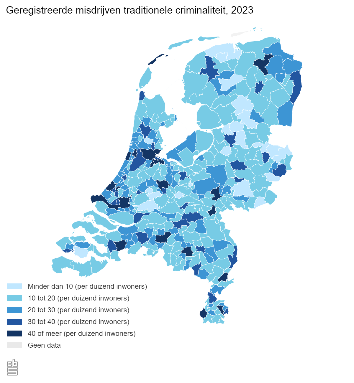 Deze vormen van criminaliteit worden ook wel traditionele criminaliteit genoemd. In Nederland zijn er gemiddeld 29 van deze soort misdrijven per duizend inwoners. Dat ligt in Bergen op Zoom en Roosendaal dus hoger. In Bergen op Zoom ligt dat aantal op 34 misdrijven per duizend inwoners, en in Roosendaal zelfs op 40 per duizend inwoners.