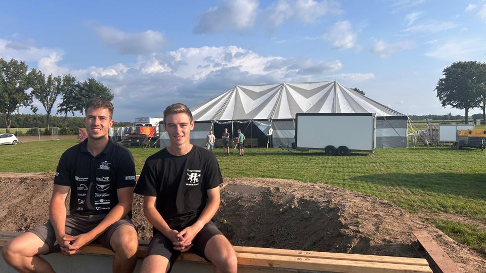 Samen met een heleboel andere KPJ-leden zijn Rob en Ruben al een aantal dagen druk bezig om de voorbereidingen voor het aankomende weekend. “We krijgen iedere avond veel hulp”, gaat Rob verder. We moeten de bar nog inrichten en de baan verder afmaken. Dat gaat goed. Vorig jaar was de grond super nat, toen twijfelden of we het door moesten laten gaan. Gelukkig is dat dit jaar anders.”
