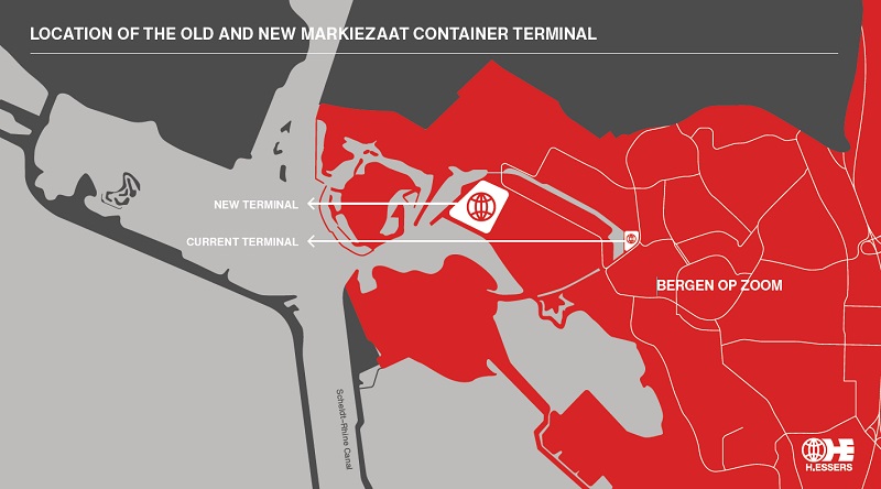 Aan het Schelde-Rijnkanaal moet daarom meer overslag komen voor de grote schepen vanuit de havens van Rotterdam en Antwerpen, benadrukt ze. Niet voor niets wordt ze ontvangen op één van de grotere transportbedrijven van Bergen op Zoom, op bedrijventerrein Noordland. De laatste twee decennia heeft de transportsector zich sterk ontwikkeld. En het is hier, waar de buitendijkse Markiezaat Container Terminal (MCT) verrijst. De bouw gaat waarschijnlijk dit jaar al van start, zo maakte het van oorsprong Belgische bedrijf dit voorjaar bekend.