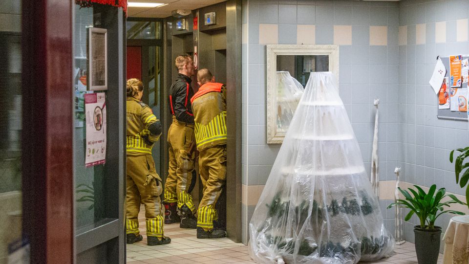 Bewoners beleefden angstige momenten in de vastzittende lift en moesten door de brandweer worden bevrijd. Foto: 112 Markiezaten