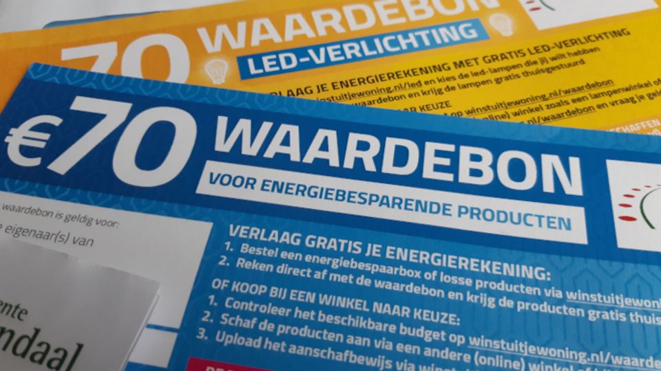 Huiseigenaren in de gemeente hebben in de eerste week van november waardebonnen ontvangen met een totale waarde van 140 euro. Met de ene waardebon kun je energiebesparende spullen kopen bij bouwmarkten en webwinkels, bijvoorbeeld isolatiemateriaal of radiatorfolie. Met de andere waardebon kun je LED verlichting kopen. De gemeente Roosendaal werkt hiervoor samen met Winst uit je woning.