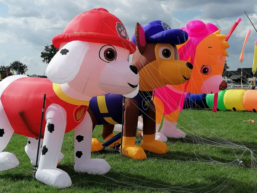 Om te kunnen vliegeren moet er natuurlijk wel wind zijn. Maar zelfs als de wind het laat afweten, kan het publiek genieten van de vliegers. Want de vliegeraars kunnen de grote vormen volzetten met warme lucht. Om te vliegeren zetten ze de kleppen van zo’n vormvlieger open, zodat de wind er door kan. Maar als ze de kleppen dichtdoen en de vlieger vullen met warme lucht, kunnen ze ‘m toch in volle glorie laten zien.