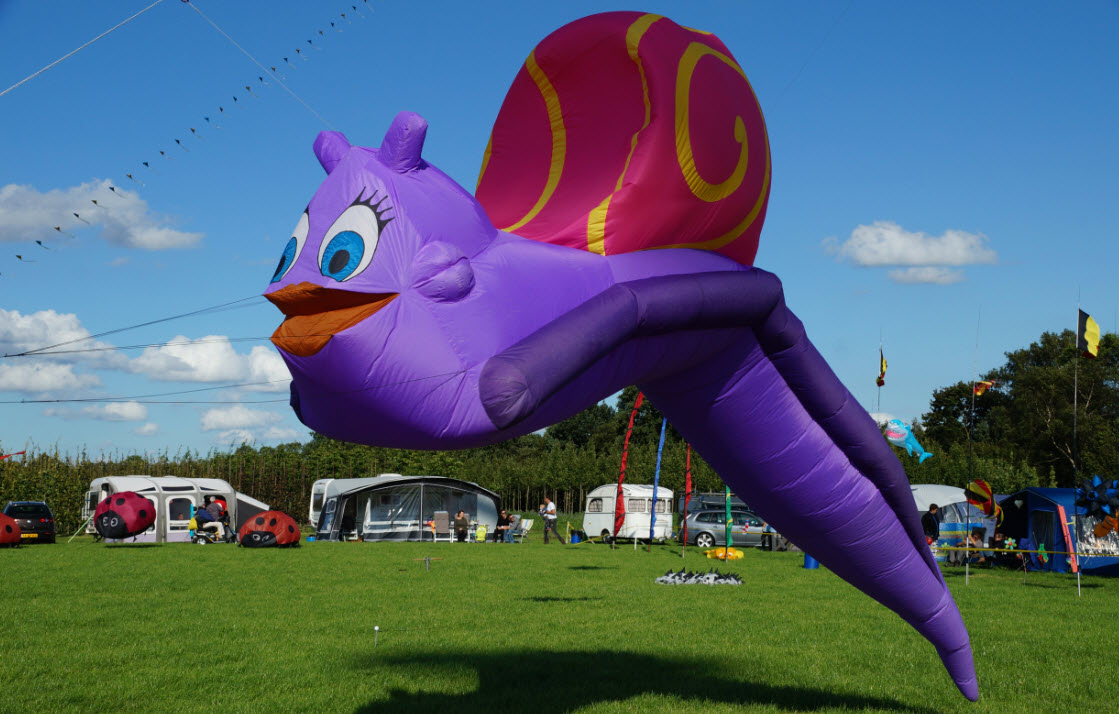 Natuurlijk zijn er ook dit jaar weer de vertrouwde activiteiten voor kinderen: de snoep- en knuffeldropping. Bij de snoepdropping gaan zakjes vol snoep omhoog de vlieger in. En als ze bovenaan zijn, klappen de zakjes open. “Honderden kinderen staan er altijd klaar voor de snoepdropping. We delen ze op in leeftijdgroepen. Want ze duiken op elk snoepje alsof ze nooit iets te eten krijgen,” lacht René. De snoepjes dwarrelen rustig naar beneden. Want René en Petra hebben voor elk snoepje een papieren helikoptertje gevouwen, vertellen ze lachend. “De voorbereidingen voor volgend jaar beginnen altijd al een dag na het evenement.”