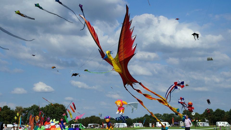 Bij juiste wind kan vliegeraar vier of vijf vliegers tegelijk oplaten