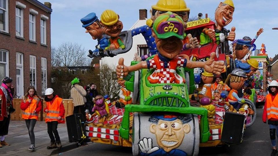 De Grote Optocht maandagmiddag was het huzarenstukje van het carnaval in Puitelaand. Met leutige en mooie grote wagens, werd het publiek getrakteerd op één groot kleurrijk spektakel. BC Vor Mekaor uit Steenbergen behaalde de eerste prijs bij de grote wagens. De wagen had het thema ‘Wa d’un gesjouw in de wegenbouw’. Er waren wegwerkers te zien, kranen, verkeerslichten en zelfs een complete vrachtwagen.