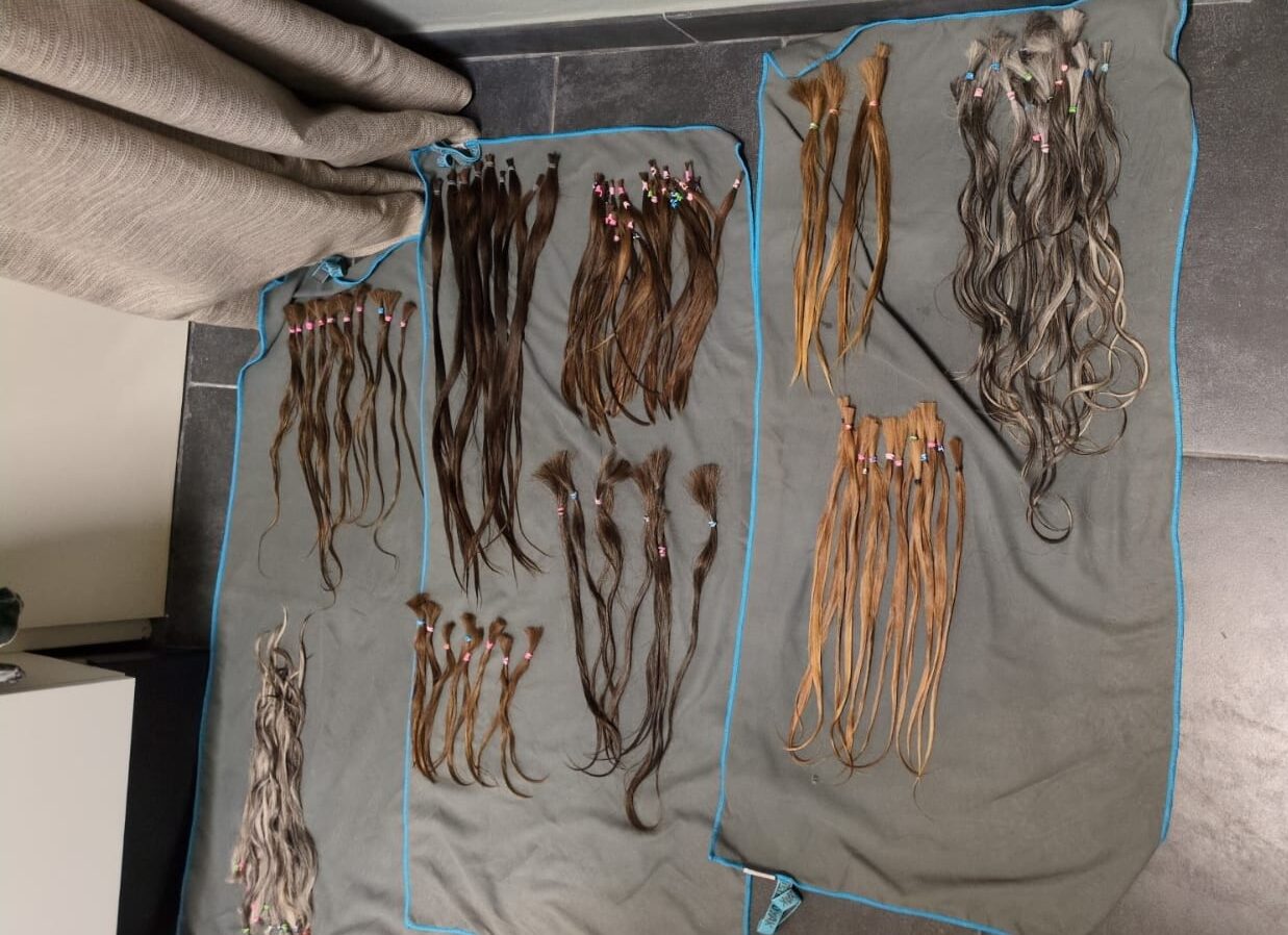In de stoel zit Maely. Haar lange haar is verdeeld in kleine plukjes die op het punt staan om afgeknipt te worden. “Het is het allerbelangrijkste dat de haren minimaal vijfentwintig centimeter zijn”, legt Natasja uit. Met een meetlint gaat ze voor de zekerheid nog even langs de plukken met haar om zeker te weten dat ze genoeg afknipt.