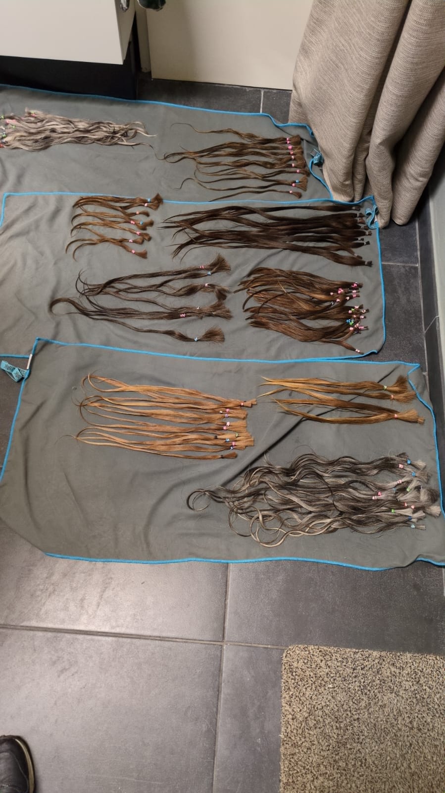 In de stoel zit Maely. Haar lange haar is verdeeld in kleine plukjes die op het punt staan om afgeknipt te worden. “Het is het allerbelangrijkste dat de haren minimaal vijfentwintig centimeter zijn”, legt Natasja uit. Met een meetlint gaat ze voor de zekerheid nog even langs de plukken met haar om zeker te weten dat ze genoeg afknipt.