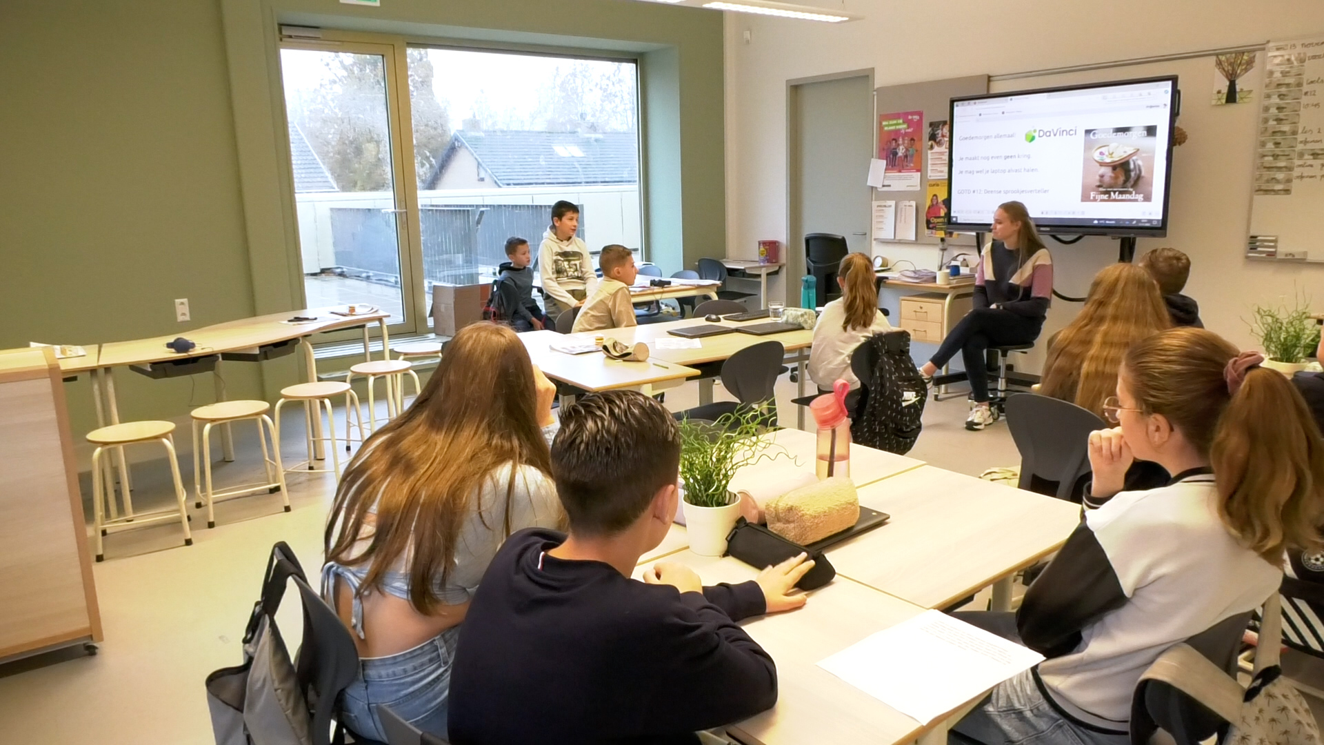 Teun Dekker loopt verder door het gebouw. Niet door de gangen. Die heeft het gebouw niet. “Het zijn allemaal leerlandschappen die rondom de lokalen liggen. Je ziet dat er nissen zijn aangebracht voor de kapstokken.” Hier en daar zie je werkplekken waar kinderen aan het werk zijn. Vaak hebben ze in de klas uitleg gekregen over de lesstof en mogen ze zelfstandig werken op een plek naar keuze. Eén van de populaire plekken is een statafel met daaraan een aantal hometrainers. Hier kunnen de kinderen tegelijkertijd schoolwerk maken en bewegen. Een andere populaire plek is een nis in de wand. “We zitten hier te rekenen. Ik vind deze plek gewoon chill”, zegt een leerling. “Eerst verdwaalde ik een beetje in het nieuwe gebouw, nu vind ik het wel een mooi gebouw”, zegt een andere leerling.