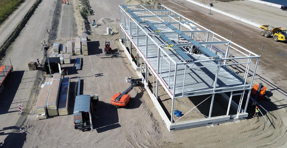 Na een jarenlange voorbereiding startte de bouw van de nieuwe terminal in maart 2024. Meer dan 5.000 hei palen gingen de grond in. “Dat hebben ze hier en daar in Bergen op Zoom wel gehoord”, zegt Klaassen. Inmiddels staat alles stevig en is het terrein opgehoogd tot 3,5 meter boven NAP.