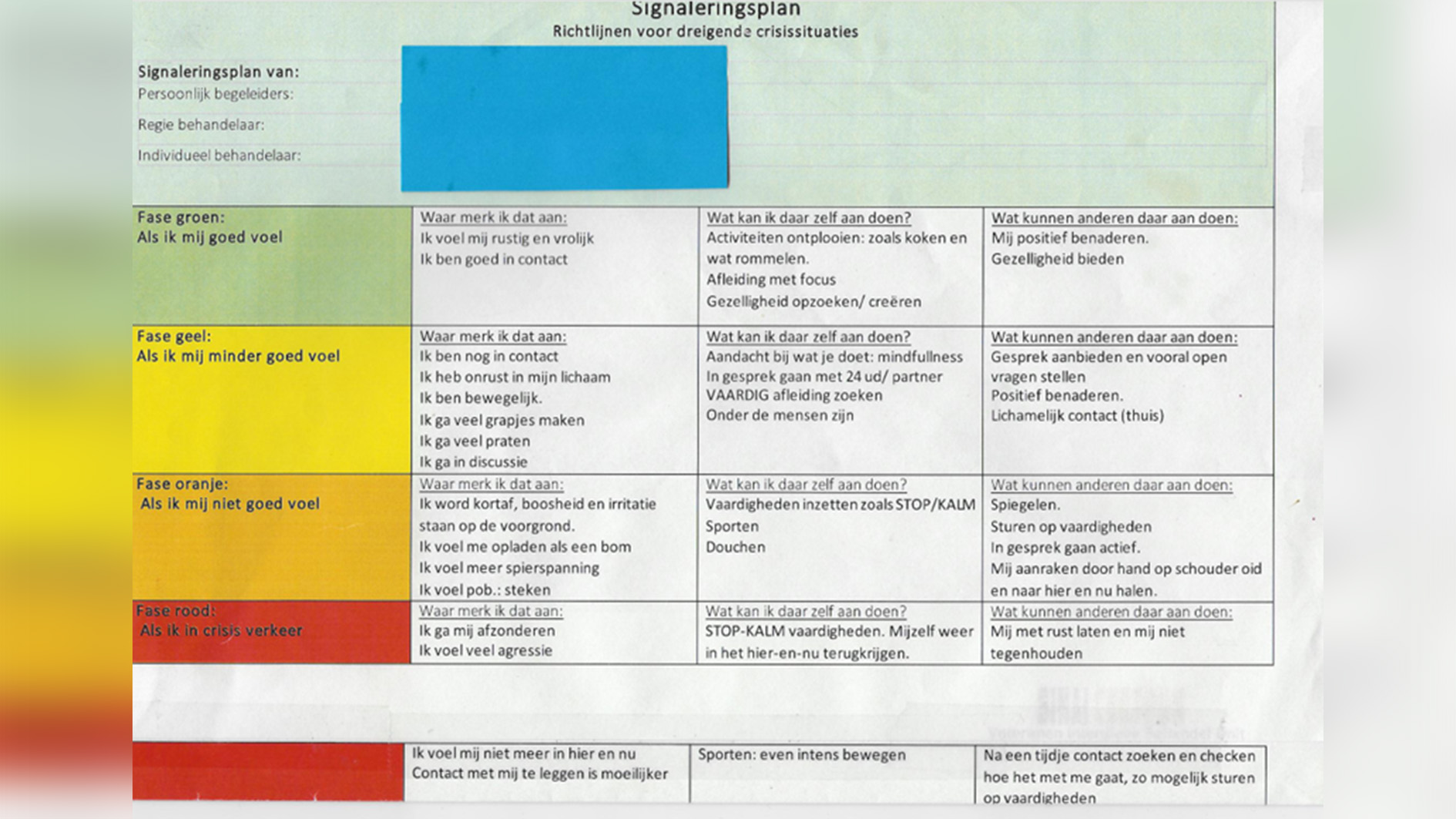 Hij werkt tegenwoordig met een stappenplan waarin de verschillende fases van stress staan aangeven en welke symptomen daarbij horen. Daarin staan stappen die hij en zijn vrouw kunnen nemen op het moment dat de spanning bij Erwin oploopt. “Ik merk meestal zelf niet hoe hoog de spanning is en dan ben je heel erg afhankelijk van derden.” Dat is voor hem erg lastig. “Dan wordt je vrouw een hulpverlener en dat hoeft ze niet te zijn.”