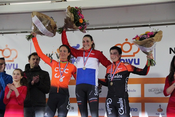 De Elite vrouwen stonden om 13.30 uur aan de start. Lucinda Brand sloeg in de slotfase van de wedstrijd een gaatje met zesvoudig kampioene Marianne Vos en hield stand tot aan de finish. Ze prolongeerde daarmee haar Nederlandse titel. Het zilver was voor Vos en Maud Kapteijns moest genoegen nemen met brons.