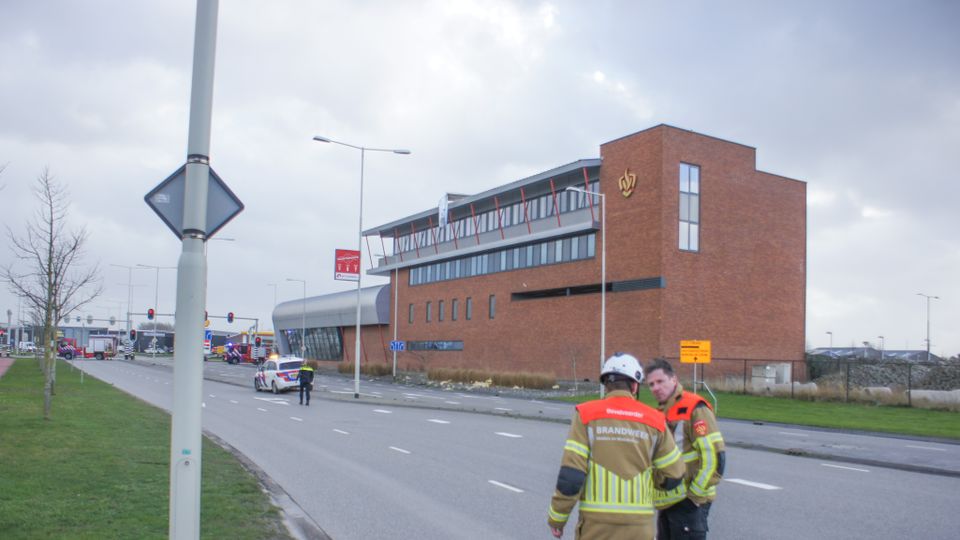 Het pand aan de Havendijk staat er nog niet zo heel lang, ongeveer tien jaar. Het dak bleek vandaag niet bestand te zijn tegen de enorme rukwinden die Eunice erop losliet. Een deel ervan kwam los. Ook van het bouwterrein ernaast waaiden onderdelen weg. Daarom zijn de omgeving en randweg langs de kazerne afgesloten. Hoe lang de afsluiting duurt viel bij de publicatie van dit artikel nog niet te zeggen.