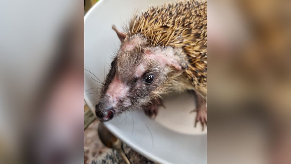 Het hoofdje van deze egel is weer bijna hersteld.
