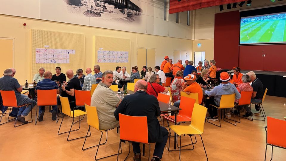 Bewoners nemen met elkaar vragen door m.b.t. de leefbaarheid van Moerdijk, tijdens het kijken van een voetbalwedstrijd en terwijl buiten de barbecue aan staat (foto: Wilmar van Dop).