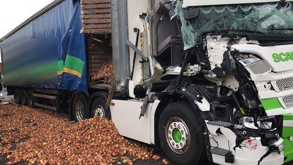 Op de A4 bij Bergen op Zoom is donderdagmiddag een ongeluk gebeurd met twee vrachtwagens en een personenauto. Een van de vrachtwagens was volgeladen met uien. Die lading lag deels op de snelweg.