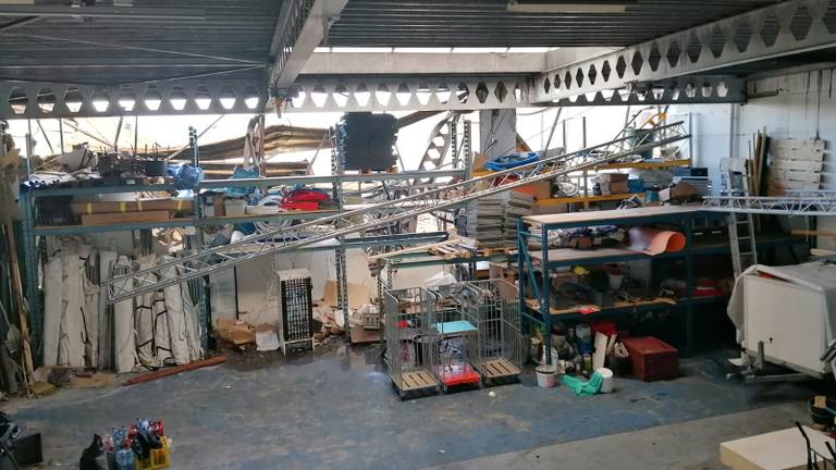 Het is even slikken bij binnenkomst in het bedrijf van Laurence. In het dak zitten gaten, een buitenmuur is weg, op de grond liggen verwoeste spullen en de muren zien zwart van de rook. Ook de brandlucht is nog goed te ruiken. “We hebben dit pand een half jaar geleden gekocht en waren net klaar met de verbouwing”, vertelt Laurence aan Omroep Brabant. Met zijn bedrijf verhuurt hij alles rondom feesten: van grote partytenten en statafels tot aan verlichting en servies. “We hadden het hier prima naar onze zin en dan krijg je dit. Dat gun je niemand.”