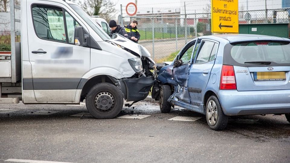 Twee auto’s zijn donderdagmiddag op elkaar gebotst op de kruising van de Borchwerf met de Industriestraat in Roosendaal.