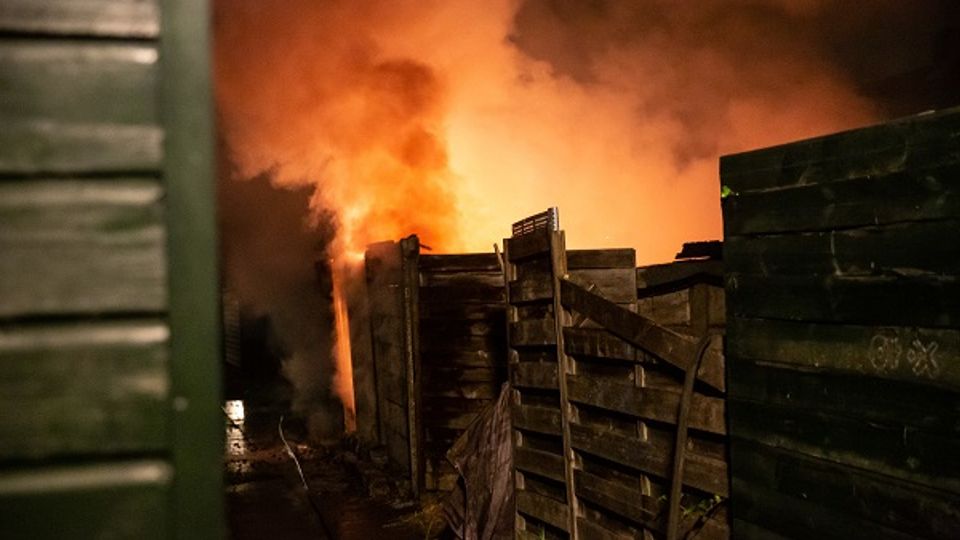Er gingen wederom enkele schuurtjes in vlammen op aan de Vlierstraat in Bergen op Zoom © Christian Traets Fotografie
