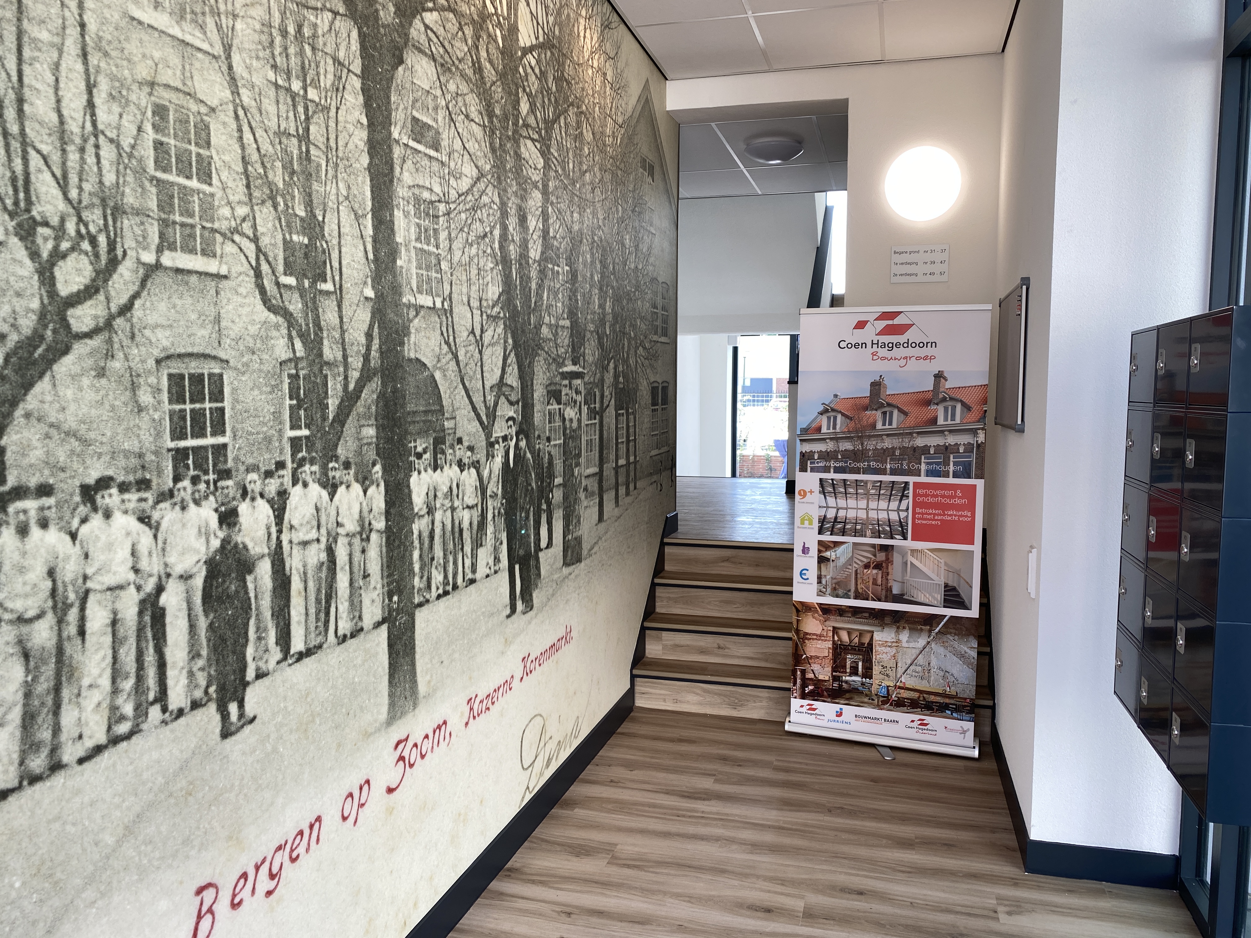 Voorheen bevonden de keuken en eetgelegenheden voor de manschappen die in de kazerne gelegerd waren in het gebouw. Uiteindelijk zijn in de jaren ’80 woningen gerealiseerd. “Die zijn recentelijk getransformeerd en verduurzaamd,” aldus architect Thoen. “Jonge mensen vinden opnieuw een goede plek: pal in het centrum van Bergen op Zoom.”