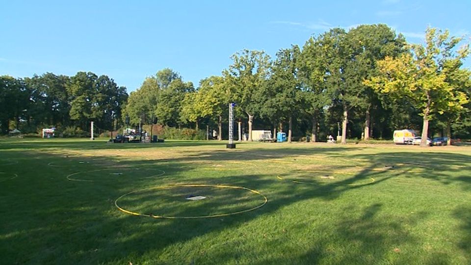 De organisatie heeft het terrein anders moeten indelen om zich te houden aan de coronamaatregelen. Er liggen hoepels, zodat de groepjes anderhalve meter afstand van elkaar kunnen houden. En bezoekers bestellen vooraf een drankenpakket dat ze bij binnenkomst mee naar hun hoepel nemen. Nabestellen kan via een app om te zorgen dat er geen rijen zijn bij de bar. Ze hebben ook looproutes gecreëerd, zodat de mensen elkaar zo min mogelijk passeren.