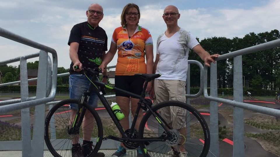 Petra Kerstens met Carlo Schepers van de Kaaimannen en Wil Buurstee van Buurstee Bike Center