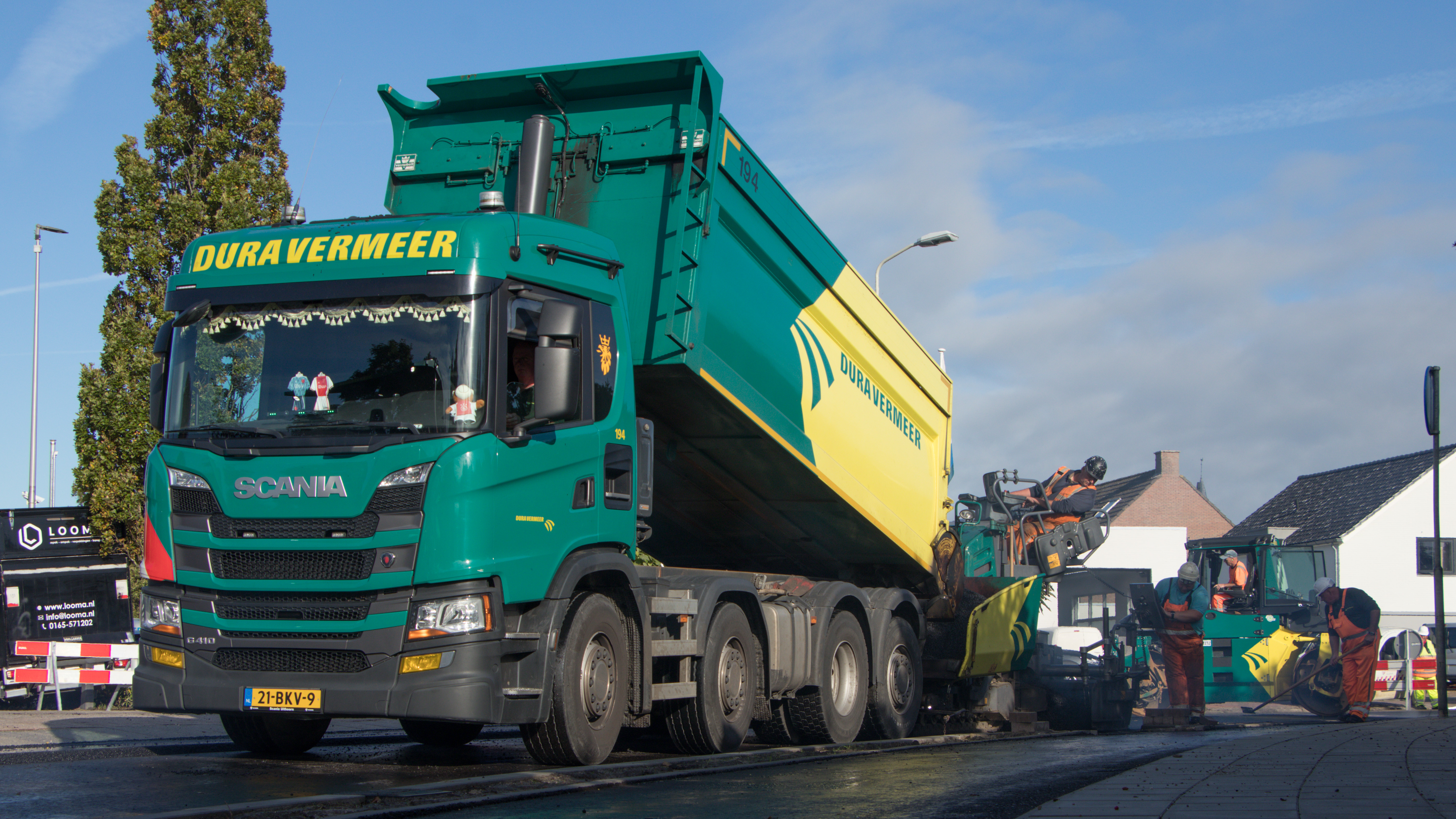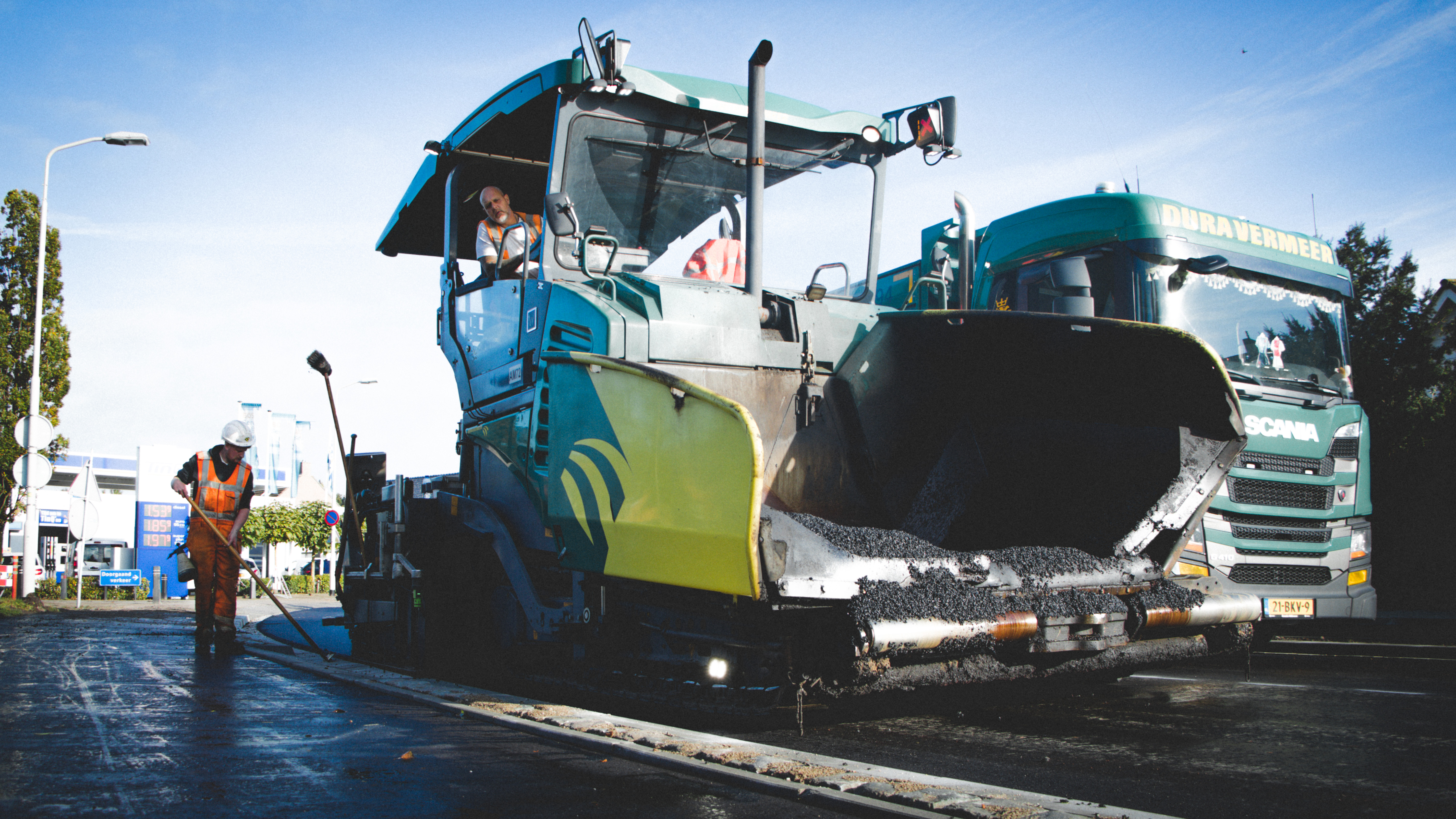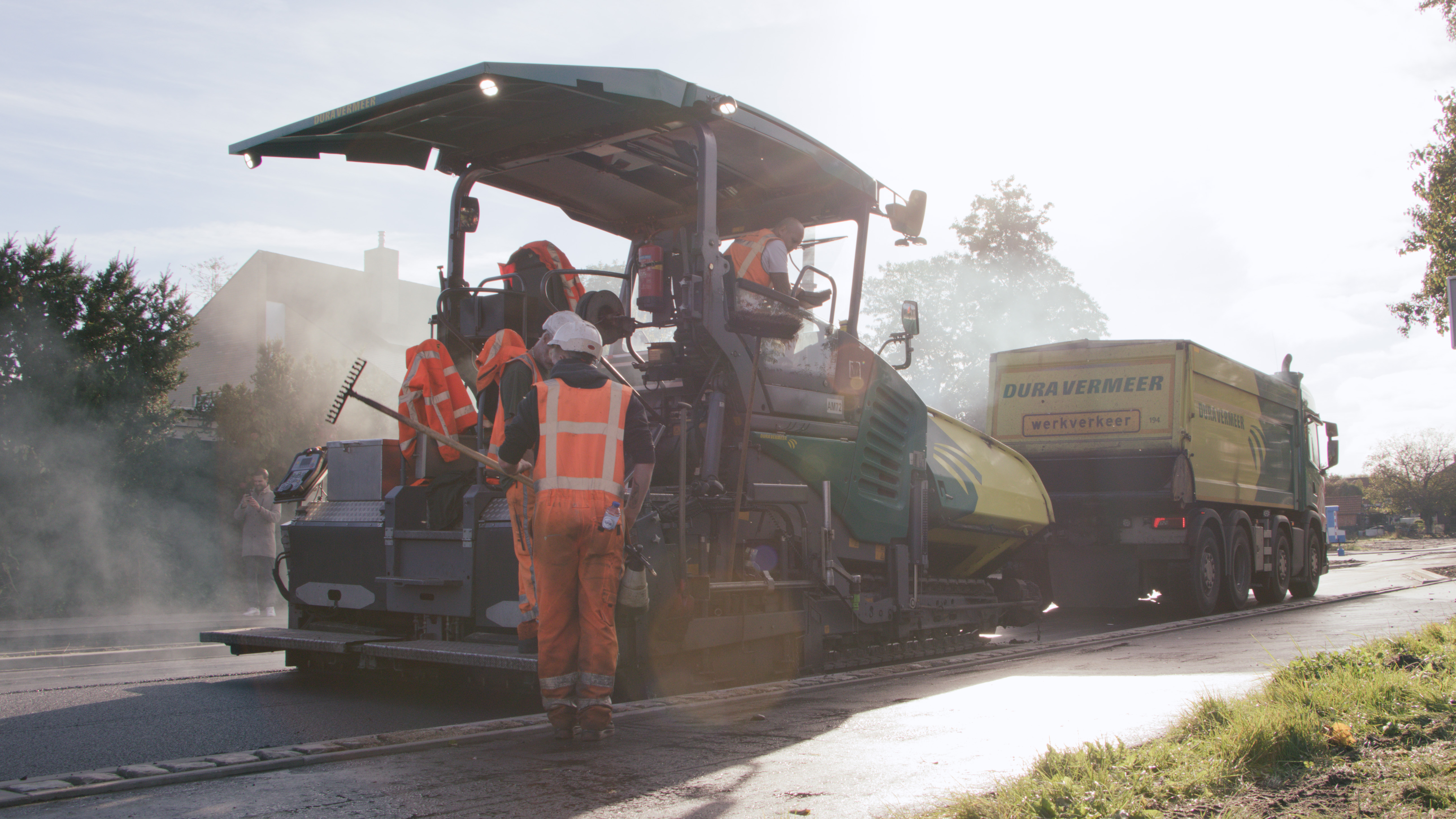 Asfaltmachines, stoomwalsen en vrachtwagens rijden donderdag af en aan op de Plantagebaan in Wouw. Daar wordt de laatste hand gelegd aan de herinrichting van die straat.