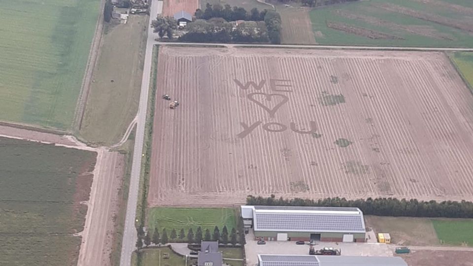 Geen graancirkels in de Woensdrechtse velden maar een heuse liefdesverklaring. Politiemensen in een helikopter ontdekten onder hen een mooie boodschap toen ze over Woensdrecht vlogen.