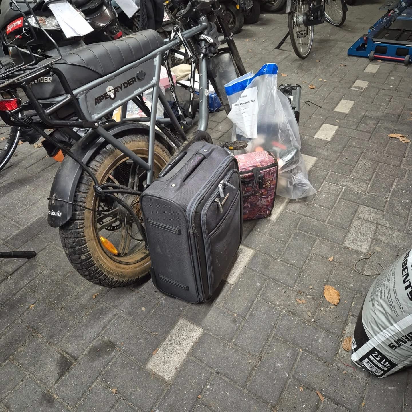 In de bosjes werden al snel een Fatbike en andere spullen, zoals gereedschappen en koffers, gevonden. Waarschijnlijk zijn deze spullen gestolen. “Wellicht was het slachtoffer van deze diefstal druk aan het carnavallen”, schrijft het politieteam van Roosendaal op Facebook.
