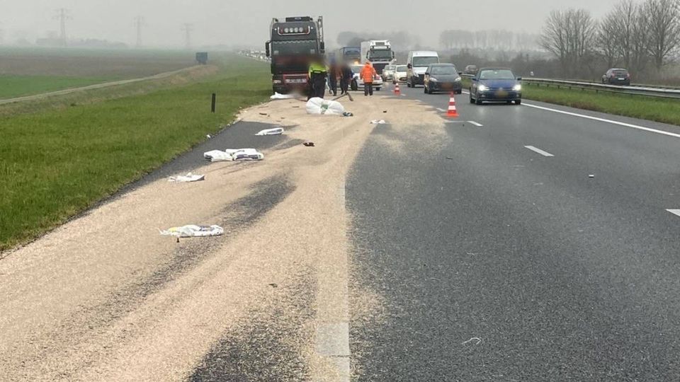 Wie vrijdagmiddag de weg opgaat zal te maken krijgen met extra reistijd van ongeveer 45 minuten. Hoe lang het zal duren voordat de troep is opgeruimd, is niet bekend.